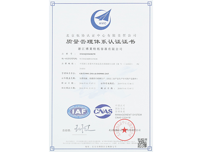 公司創(chuàng)辦于2009年4月,是博萊特紙業(yè)基礎(chǔ)上的轉(zhuǎn)型升級和延伸產(chǎn)業(yè)鏈,專門從事紙容器的制造和加工,公司引進(jìn)國際一流、技術(shù)裝備先進(jìn)的臺灣祥藝2.5米寬門幅、高車速三層、五層瓦楞紙板生產(chǎn)線兩條;先進(jìn)的全自動高速四色印刷、開槽、模切真空吸附于一體的印刷機兩臺;全自動模切機兩臺,全自動釘粘一體聯(lián)動線一條,目前公司正計劃引進(jìn)國際一流的固定式高速印刷機一臺。公司已通過ISO9001質(zhì)量管理體系認(rèn)證與沃爾瑪認(rèn)證,2017年被評定為國家高新技術(shù)企業(yè),2018年實現(xiàn)工業(yè)產(chǎn)值3.3億元,2019年期望成為產(chǎn)值達(dá)5億的紙制品制造企業(yè)。